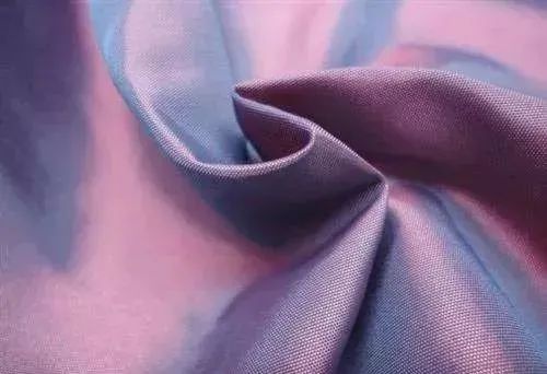 经向锦纶,纬向涤纶,平纹织造。也有全涤的,用一根阳离子丝,产生双色效果。